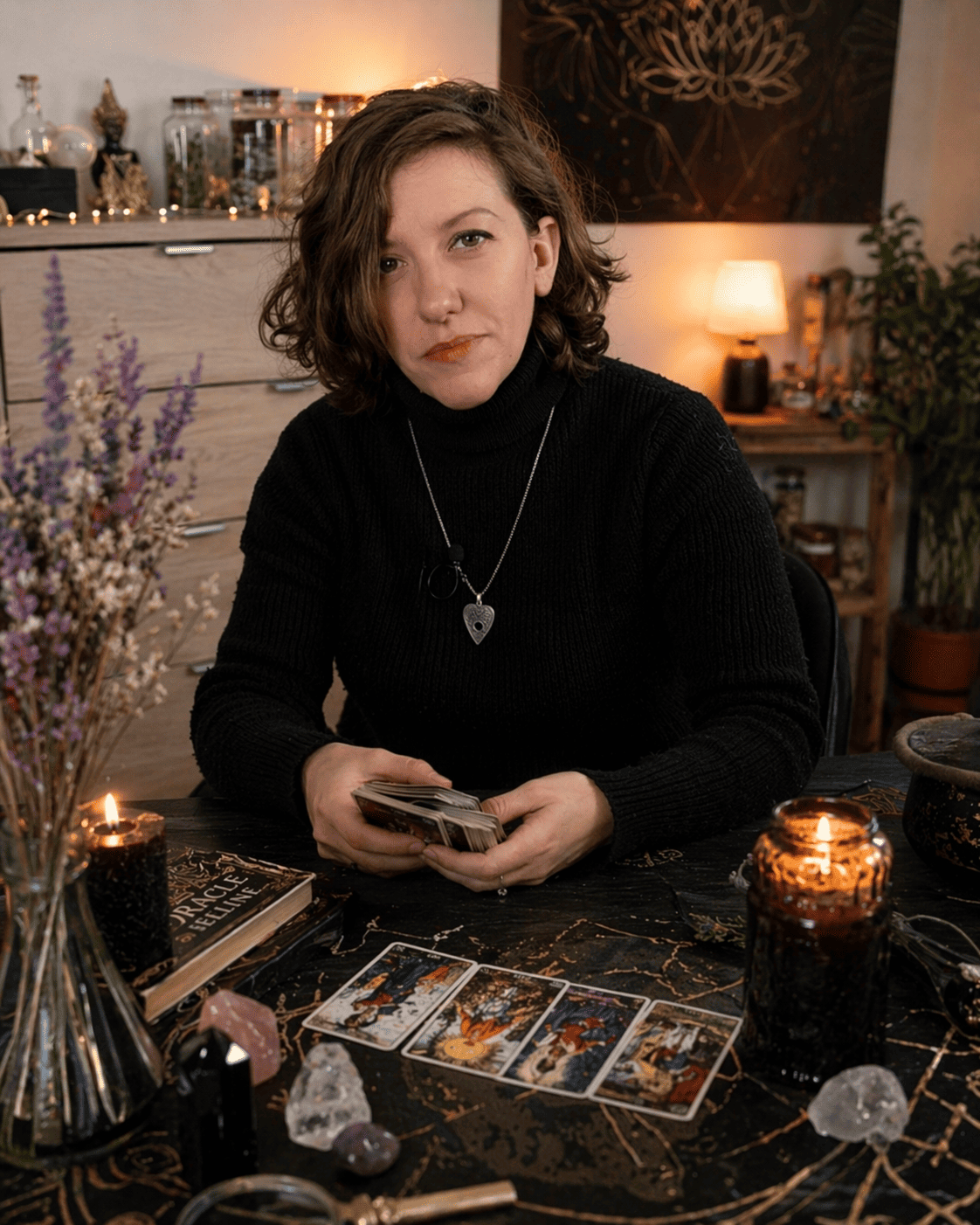 Je travaille avec le Tarot comme base, puis j’ajoute le Belline ou un autre oracle selon le sujet. Si c’est pertinent, je peux aussi passer par un tirage plus “matière” : tirage africain par les os. Et pendant la séance, je suis en lien avec un esprit de ma chaîne qui apporte des informations clés et des angles plus fins.
